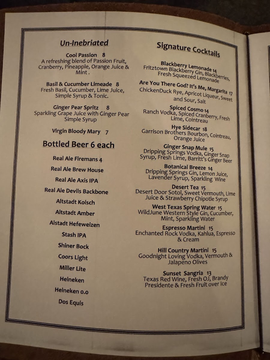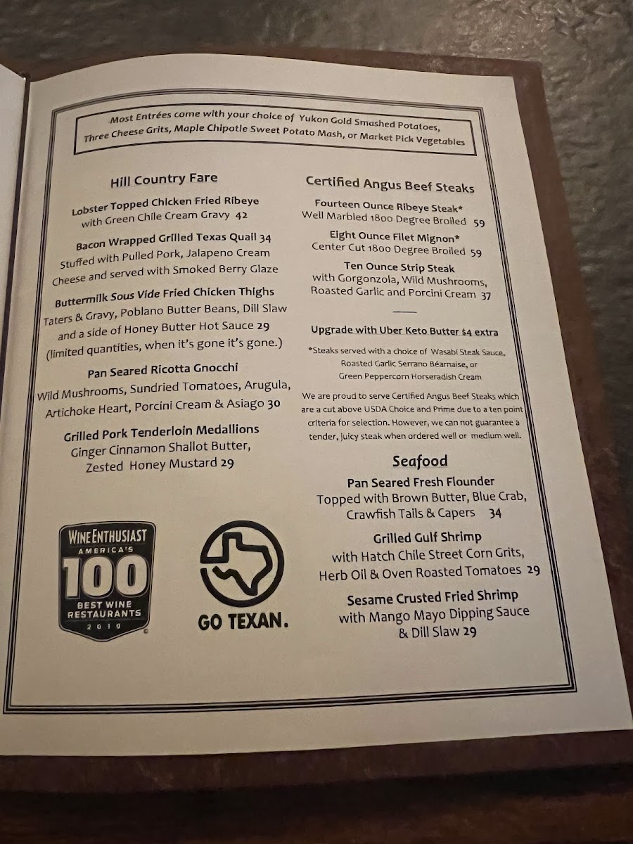 As you delve into the main courses, the Ribeye Steak and Pan-Seared Flounder come highly recommended, consistently praised by guests for their impeccable preparation and flavor. The steak is cooked to perfection and melts in your mouth, while the flounder promises a delightful seafood experience that captures the essence of the Texas Hill Country.